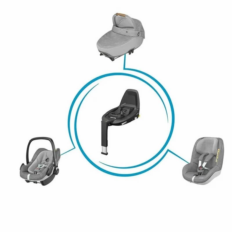 FamilyFix3 a fost construita pentru a se potrivi cu landoul Jade I-Size, scoicile auto Coral si Pebble Pro I-Size si scaunul auto Pearl Pro 2 I-Size, permitandu-i bebelusului sa utilizeze baza pana la 4 ani. De asemenea, ofera atat o instalare Click & Go, cat si Slide & Go.